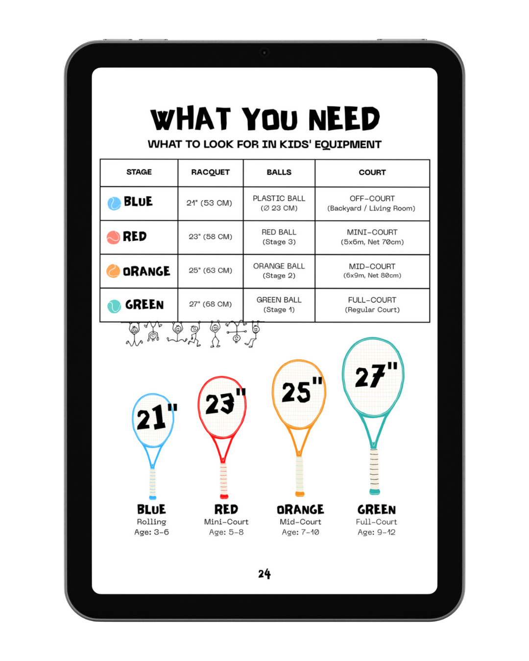 No! The Blue Stage (ages 3-6) works perfectly well without any special space – in the living room, garden, or park. Only from the Red Stage onwards – from around age 6 – do you need a small court (approx. 5x6m). Many clubs offer mini-courts for children. The guide also shows you alternatives for playing at home.