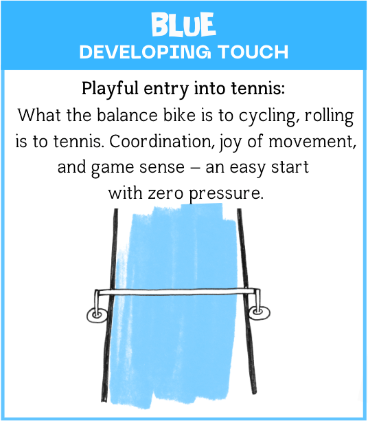 No, perfect! The Blue Stage is designed specifically for 3-6 year olds. It's not about tennis technique, but about rolling, catching, and ball control – playfully and without pressure. The earlier, the better.